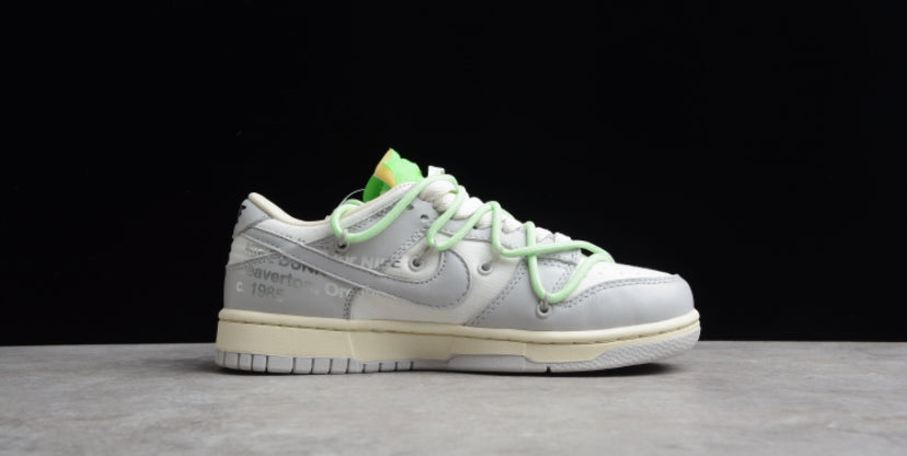 Nike's Dunk Low silhouette was designed to incorporate basketball influence into a low-top sneaker. Crafted from white, grey and solar yellow leather, these Nike Dunk Low sneakers introduce a new and fresh colourway to the footwear icon, designed in collaboration with the streetwear experts, Off-White.